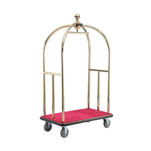 Hotel luggage trolleys and luggage carts for porter or bellman to use to transport luggage for hotel guests. Quality stainless steel luggage trolleys or brass luggage carts, suitable for heavy duty.