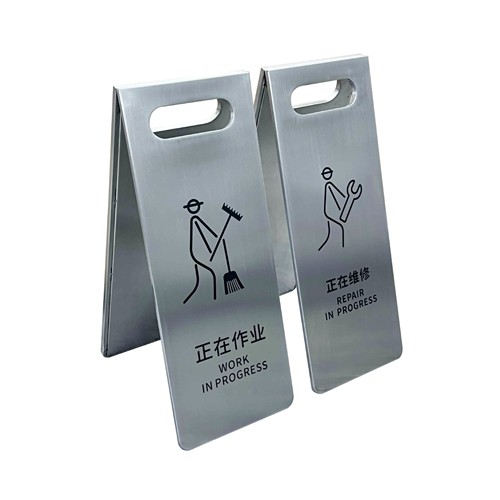The caution safety sign is constructed of 201 /304 Stainless steel with brush finish , rubber feet prevent sign from slipping or moveing