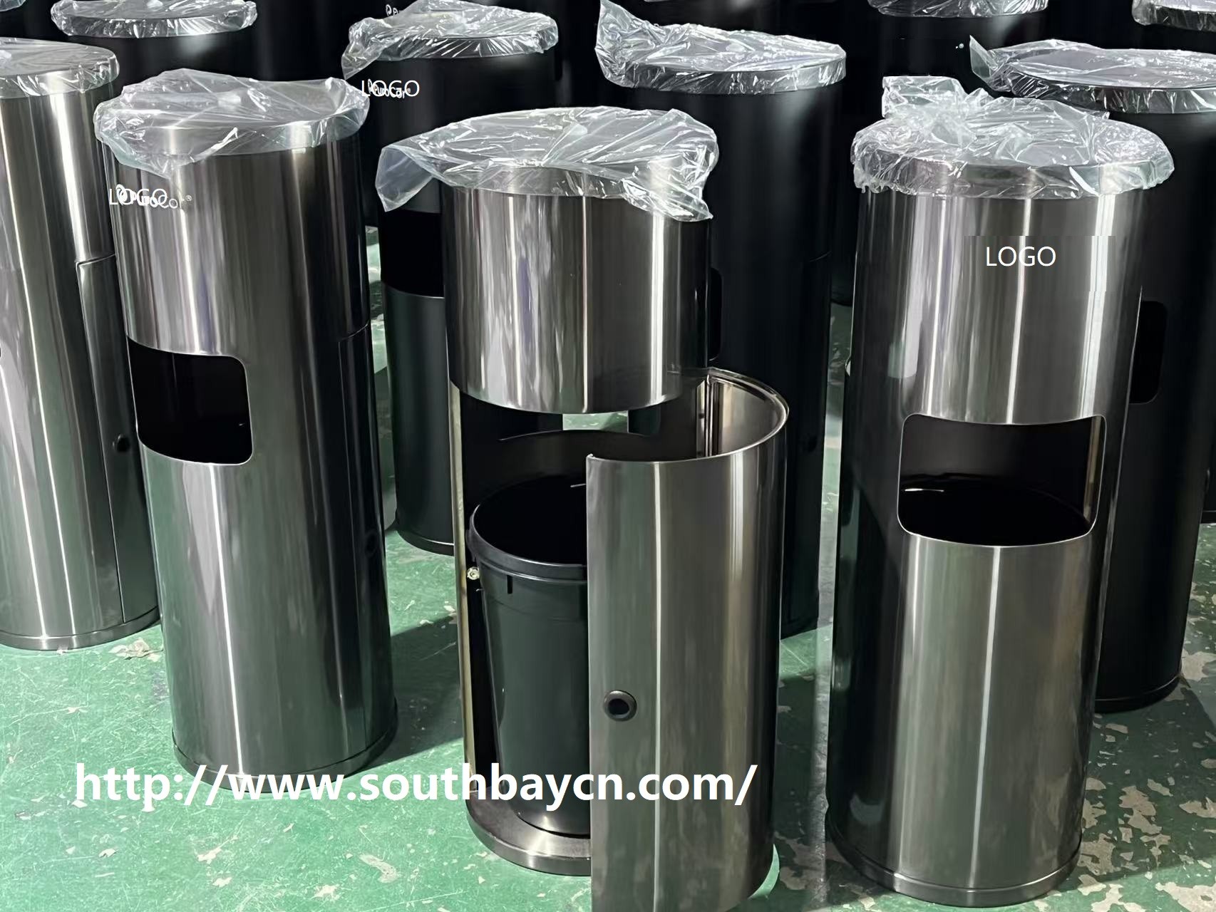 Stainless steel with built-in trash can for convenient wipe disposal.