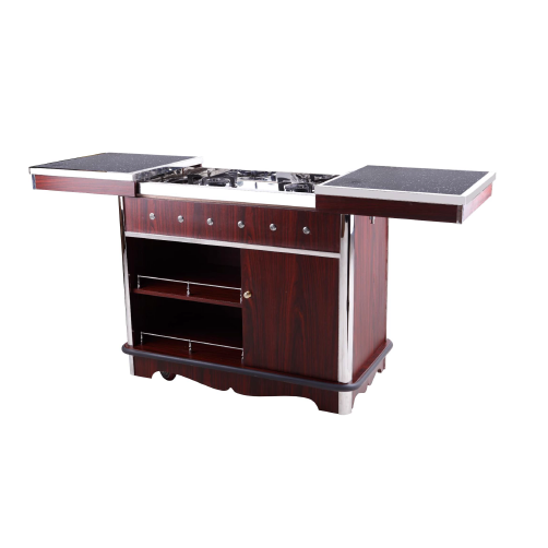 Walnut-Colored Wooden Flambe Trolley